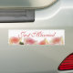 Empfindliche rosa Rosen und extravagante der Skripttext, gerade verheiratet, lassen diesen Autoaufkleber ein Muss für jedes mögliches Brautauto haben.