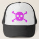 Ein rosa Totenkopf mit gekreuzter Knochen in einer cartoony Art auf einem Fernlastfahrerhut. Gerade Variante.