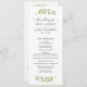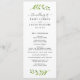 Dieses elegante Hochzeitsfeierprogramm zeichnet sich durch einen Blattrahmen aus grün lackierten Ästen mit Aquarellen und Blätter aus, die dieses moderne und minimale naturlich inspiriert Typografie-Design unterstreichen. Ideal für einen Frühlings- oder Sommeraufenthalt. Personalisieren Sie den stylischen dunkelgrauen Text auf beiden Seiten der Karte mit Ihrer eigenen Zeremonie, Hochzeitsfeier, und danken Sie Ihnen den Text der Nachricht.