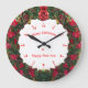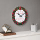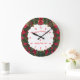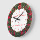 Frohe Weihnachten und Glück Neues Jahr Zeichen, und gerahmt in Weihnachtskranz, entworfen mit Stunden und Minuten Dials in Large Round Clock. #ChristmasClock #Clock #ChristmasWreath