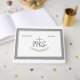 Dieses formale Design zeichnet sich durch einen silbernen und weißen Rahmen, der das gesamte Design umrahmt. Im Mittelpunkt steht ein Kreuz mit den Buchstaben "IHS" darüber, das Bild von Palmen Blätter unterhalb. Die Namen der Braut und des Bräutigams werden auf beiden Seiten oben auf dem Bild angezeigt. Auf der Rückseite befindet sich das Bibelverse Ihrer Wahl. Entworfen, um mit der Hochzeitssuite-Kollektion "Gerahmt katholische Bibel-Verse" zu koordinieren.