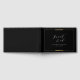 Elegantes, modernes Imitat mit goldenem Rahmen mit stilvollem Gästebuchskript und serifenlosem Schriftart auf schwarzem Hintergrund, einfach und raffiniert. Günstige Gästebuch für klassische Hochzeiten, luxuriöse Hochzeit und einfache formelle Hochzeit. Sehen Sie sich alle passenden Stücke in der Sammlung an.