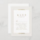 Elegante, moderne Imitate goldener Rahmen mit stilvollen Skript- und Serif-Schriftart-Inhalt auf Elfenbeinhintergrund, einfach und raffiniert. Große RSVP Karte für moderne klassische Hochzeit, luxuriöse Vintage Hochzeit und einfache formelle Hochzeit. Sehen Sie sich alle passenden Stücke in der Sammlung an.