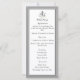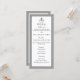 Das gerahmt katholische Bibelverse-Design besticht durch das katholische Symbol für Christus und das Kreuz als oberstes Mittelbild. Das Bild der Palmbranchen wird unten angezeigt. Auf der Vorderseite wird ein benutzerdefinierbares Menü angezeigt. Auf der Rückseite finden Sie eine persönliche Nachricht des neu verheirateten Ehepaares, zusammen mit einem ausgewählten Bibelvers. Die Namen und das Datum der Hochzeit des Ehepaares werden unten angezeigt. Das gesamte Design ist durch eine schöne silber-weiße Grenze gerahmt. Entworfen, um sich mit der Gerahmten katholischen Bibelverse Hochzeitssuite abzustimmen.