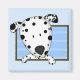 Unser niedlicher Dalmatiner Magnet hat den berüchtigten gepunkteten Hund gezeichnet als Cartoon! Sein Kopf ist leicht schräg, während er neugierig aussieht. Der Hintergrund des Rahmens ist blau gestreift. Seine schwarz-weißen Pfoten sind am Rand des Bilderrahmens. Einzigartige Dalmatiner-Geschenke mit Ihrer Lieblingshundrasse. Dieses Design ist auch für andere Hundefreunde erhältlich.