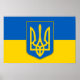 Eleganter gerahmter Druck mit Flag der Ukraine mit Wappen.