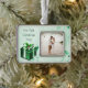 Erinnern Sie sich an Ihr erstes Weihnachtsfest zusammen mit einem festlichen Grünen Weihnachtsgeschenk Gerahmten Ornament. Im Ornament-Design erwartet Sie ein lebendiges, grünes Weihnachtsgeschenk, das mit heiligen Beeren und abfallenden Schneeflocken geschmückt ist. Auf elegantem Scroll- und Blätter-Hintergrund können Sie Ihr eigenes Foto und Ihren Text individuell gestalten. Mit diesem Design sind auch zusätzliche Geschenk- und Urlaubsartikel erhältlich.