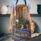 Stellen Sie sich vor, wie schön es wäre, in einer alten Hütte aus Holz wecken, das Fenster zu öffnen und frische Luft zu genießen. Die Einrichtung der Küche ist mit einer Touch Landzauber versehen. Diese sonnige Schürze passt perfekt in den Bauernhof oder den rustikalen Innenausbau. Sie können den Text "Kochen mit Liebe" löschen oder durch Ihre eigene Nachricht ersetzen.