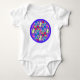 Geranium Blume Baby Bodysuit. Spaß und niedliches Design mit blauem Hintergrund. Design auf Vorder- und Rückseite,