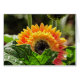 Die Blüte eines atemberaubenden Gerbera daisy flüchtige Blick aus einem Blatt heraus. Beachten Sie, dass diese Karte mit Ihrer persönlichen Inschrift angepasst werden kann.