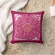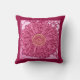 Kissen in einem Blockdruck eines Gerbera-Disys, auf der Grundlage eines Fotos, digital transformiert und handgetönt - Fuchsienrosa mit tiefem Maron/Bordeaux und Muschel-Rosa, mit tiefer Marone/Bordeaux-Grenze