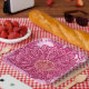 Gerbera Daisy Block Print, Maroon & Pastel Pink Pappteller