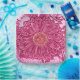 Papierplatte im Blockdruck eines Gerbera-Disys, auf der Grundlage eines Fotos, digital transformiert und handgetönt - Fuchsienrosa mit tiefem Maron / Bordeaux und Muschel pink
