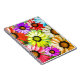 Helle und lebhafte, farbenfrohe Gerbera-Blume aus Rot, Gelb, lila und Weiß. Blumendesign für glückliche Zeiten.