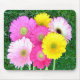 Es ist ein Bild der gelben und rosa Gerberagänseblümchenfarben. Der Name für das Bild kommt von den 7 Gänseblümchen, die schauen, wie sie für ein Team-Foto aufwerfen. Ich legte die Gänseblümchen unten auf das Gras.