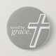 Gerettet durch Anmut ✞ Knopf auf grauem Hintergrundknopf.
