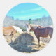 Gerettete Entwurfs-Pferde, die Heu essen Runder Aufkleber
