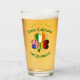 Personalisiertes Trinken oder Bierglas mit den Fahnen von Deutschland, Irland und den USA oder USA in diesem Kleeblatt mit einem zackigen Schwanz. Oben sind die Wörter DREI KULTUREN, in dunkelgrünen, kreisförmigen, keltischen Buchstaben. Unten, in ähnlicher Schrift sind die Worte ONE YOURNAME. Das Hinzufügen eines Namens in den richtigen Ort fügt eine personalisierte Touch für sich selbst oder ein Geschenk hinzu. Gut für das Oktoberfest, St. Patrick's Day und 4. Juli. Schönes Geschenk für die Zuhause Bar.