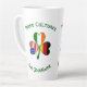 Personalisierte große latte Tasse mit den Fahnen von Deutschland, Irland und den USA oder USA in einem Kleeblatt mit einem lauten Schwanz. Es sitzt auf einem Fraktal von hellgrünen quadratischen Quadraten. Oben sind die Wörter DREI KULTUREN, in dunkelgrünen, kreisförmigen, keltischen Buchstaben. Unten, in ähnlicher Schrift sind die Worte ONE YOURNAME. Wenn Sie Ihren Namen in den richtigen Bereich einfügen, wird eine personalisierte Touch hinzugefügt. Das Hinzufügen eines anderen Namens schafft ein Geschenk. Überlegte Hauswärmung Geschenk. Einzigartig für Wiedersehen, Oktoberfest, 4. Juli und St. Patrick's Day.
