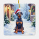 German Pinscher Snowy Courtyard Santa Hat Keramikornament