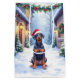 Send warm holiday wishes with this festive Christmas card featuring a German Pinscher wearing a Santa hat in a softly lit snowy courtyard. Evergreen garlands, glowing lanterns, and gentle snowfall create a cozy watercolor winter setting perfect for dog lovers. The blank interior allows for personalized messages, making it ideal for seasonal gifting, holiday correspondence, and breed-themed stationery collections.
