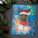 Die Weihnachtszeit des Deutschen Schäferhundes zeigt eine Aquarellfarbe eines deutschen Schäferhunds mit einem roten Weihnachtshut, einem roten Weihnachtsschal und einer galaxischen Wasserfarbe.