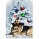 Beautiful German Shepherd holiday art. The GSD is adorable aside a decorated woodland christmas tree. Cards, ornaments, and apparel. Lots of gift ideas for German Shepherd lovers to make the gift giving holiday extra special.