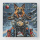 German Shepherd Dog Riding Motorrad Weihnachten Quadratische Wanduhr