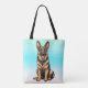Die Ohren sind großartig, das Lächeln ist bezaubernd, der Hund ist perfekt. .. natürlich ist es ein deutscher Schäferhund! Mit einem Gradientenblauen Hintergrund ist dies die perfekte Tasche für alle, die Hunde und insbesondere deutsche Hirten Lieben.
