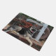 Diese Türmatte zeigt ein Foto von unserem schönen 7 Monate alten deutschen Schäferhund namens Myla. Mit ihrem vorderen Bein über den Rand einer Ziegelmauer und einem offenen Mund in einem großen Hündchen Lächeln entspannt sich Myla unter einem Begrüßungsschild. Eine perfekte Tür für jeden Hundefreund.