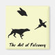 Eine Silhouette eines deutschen Kurzen Haarspaltens, der mit einem Falken zusammenarbeitet.