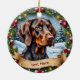 A beautiful, ultra-detailed Christmas ornament design featuring a realistic portrait of the breed centered within a soft, festive winter frame. This elegant design includes pine branches, red berries, and snowflakes against a snowy backdrop, illuminated by warm holiday lighting. The balanced, round composition includes clear space below the dog for customization.
