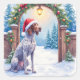 Send festive holiday cheer with this charming Christmas card featuring a German Shorthaired Pointer wearing a Santa hat near a beautifully decorated snowy gate. Evergreen garlands, glowing lantern light, and gentle snowfall create a soft watercolor scene perfect for dog lovers. The blank interior offers space for personal messages, making it ideal for seasonal gifting, holiday correspondence, and breed-themed stationery collections.