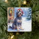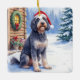 German Wirehaired Pointer Snowy Lodge Santa Hat Keramikornament