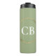 Maßgeschneidertes Monogramm mit goldenem Rahmen aus Imitaten auf eleganter "Tranquil Sage" Thermal Tumbler: Klassisches Design trifft auf modernen Stil und Funktionalität in unserer Mute Elegance Kollektion. Dieser einzigartige und stilvolle Trinkbehälter mit individuellem Namen in fett-modernem Schriftart, gerahmt von einem Imitat Goldkreis, ist das ideale Geschenk für sich selbst oder einen geliebten. Bleibe chic und gönne deine Getränke unterwegs. Die ruhige Sage ist eine ruhige und ausgewogene Farbe, die an die beruhigenden Eigenschaften der Natur erinnert. Es verbindet sanfte Farbtöne von gedämpftem Grün und subtilen Grautönen, die ein Gefühl von Ruhe und Harmonie wecken. Wie die Blätter eines ruhigen Waldes lädt diese Farbe zu einer friedlichen und erholsamen Atmosphäre ein.