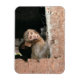 Der rechteckige Foto-Magnet eines verängstigten Affen mit großen Augen, die so aussehen, als sei er von etwas beängstigt oder so erinnert er sich plötzlich an etwas.
