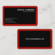 Rote Ecken roten Rand schwarze Visitenkarte. Gestaltung eines breiten roten Randes mit weißem und grauem Text auf schwarzem Hintergrund. Individuelle moderne und berufliche Visitenkarte. Anpassbare Text- und Randfarbe.