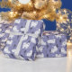 Gesällter Hund mit Schnee auf Pinienbäumen Hinterg Geschenkpapier