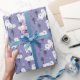 Gesäumter Hund mit Schnee auf Pinienbäumen Hintergrund Wrapping Paper