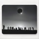 Silhouette einer Menschenmenge auf einem Feld, die eine totale Sonnenfinsternis beobachtet