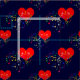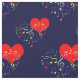 Ein nahtloses Muster von herzförmigen Noten aus einer Vielzahl von Regenbogenfarben über dem roten Herz vor dem dunkelmarineblauen Hintergrund. Liebe, Musik, romantisches Design "Das singende Herz" für jeden. Sie können das Kippmuster, die Größe und den Rotationswinkel ändern. Seien Sie einfach kreativ, nutzen Sie dieses schöne Gewebe für jedes Ihrer Projekte und seien Sie glücklich!
