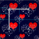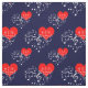 Ein nahtloses Muster von herzförmigen Noten mit weißer Farbe über dem roten Herz vor dem marineblauen Hintergrund. Liebe, Musik, romantisches Design "Das singende Herz" für jeden. Sie können das Kippmuster, die Größe und den Rotationswinkel ändern. Seien Sie einfach kreativ, nutzen Sie dieses schöne Gewebe für jedes Ihrer Projekte und seien Sie glücklich!