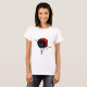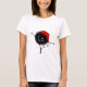 Rotes weibliches Shirt mit einer schlechten schwarzen Wanze, die zu den Melodien eines Weihnachtsliedes tanzt und singt.