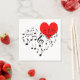 Große Silhouette von Noten und Klappen in Herzform, ein kleines Bild eines roten Herzens hinter den schwarzen Noten. Ein einzigartiges romantisches White Standard Cocktail Papier Napkins für jedermann.