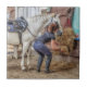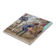 Gesatteltes Pferd am Füttern von Zeit Fliese