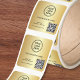 Geben Sie Ihrer Marke mit diesen goldenen Logo- und QR-Code-Aufklebern mit individuellem Design eine elegante, professionelle Note, perfekt für Kleinunternehmen, Kreative und Dienstleister. Laden Sie Ihr Firmenlogo und Ihren QR-Code hoch, um polierte Etiketten zu erstellen, die es Kunden leicht machen, sofort mit Ihrer Website, Ihren sozialen Medien oder Ihrem Online-Shop in Kontakt zu treten. Mit einem eleganten goldenen Farbverlauf im Hintergrund und einem sauberen minimalistischen Layout sind diese Aufkleber ideal für Produktverpackungen, Marketingmaterialien, Dankeskarten und Versandkartons und können auf einer praktischen Rolle für eine schnelle Anwendung gedruckt werden.