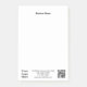 Dieses Business Notizblock hat ein Platzhalter-Bild in der unteren links Ecke. Sie können das Bild durch Ihr Firmenlogo ersetzen. Ein QR-Codebild befindet sich in der rechten unteren Ecke. Bitte geben Sie vor der Bestellung Ihre Website-URL ein, damit der QR-Code korrekt funktioniert. Eine fett gedruckte Textzeile steht für Ihren Firmennamen ganz oben. Weitere schwarze Textzeilen befinden sich ganz unten. Sie können den Text bearbeiten, um Ihre Adresse, Telefonnummer und Website anzuzeigen. Alle Texte können bearbeitet oder gelöscht werden. Die Notizblöcke sind weiß.