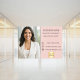 Modernes Geschäftsfensteraufkleber mit Foto, Kontaktinformationen und Firmenlogo. Perfekt für Immobilienmakler, Salons, Boutiquen und Büros. Einfach anzupassen mit Ihrer eigenen Marke, um eine professionelle und einladende Ladenfront-Display zu erstellen. Rosa Hintergrund, taupefarbener Text.