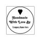 Stellt Ihr Unternehmen handgefertigte Produkte her? Eine kundenspezifische Briefmarke macht es Ihren Kunden leicht zu sehen, dass sie handgefertigte Waren bekommen. An der Spitze steht ein Herz. In der Mitte steht Handmade mit Liebe By. Am unteren Rand gibt es einen Platzhalter-Text für den Firmennamen.