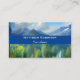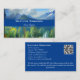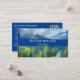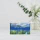 Eine Visitenkarte mit einem Bild von Bergen und einem Wald mit grünen Bäumen.